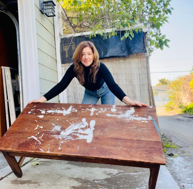 In December 2022, I was at my friend Jordan's house. She has a basement. In the corner was this junky old table she had found in an alley years ago. She’d always said, “One day I’ll do something with it.”