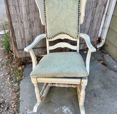 This wingback oak rocking chair might not look like much right now, but beneath the old paint and worn fabric is a solid oak beauty with so much life left in her. I’m currently stripping it back to its natural wood and prepping it for a full makeover, and it’s available for your custom colors and fabric. Once restored, it’ll last for years and would look adorable in a kid’s room, a classroom, or even out on the front porch. If you’re interested, reach out!
