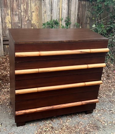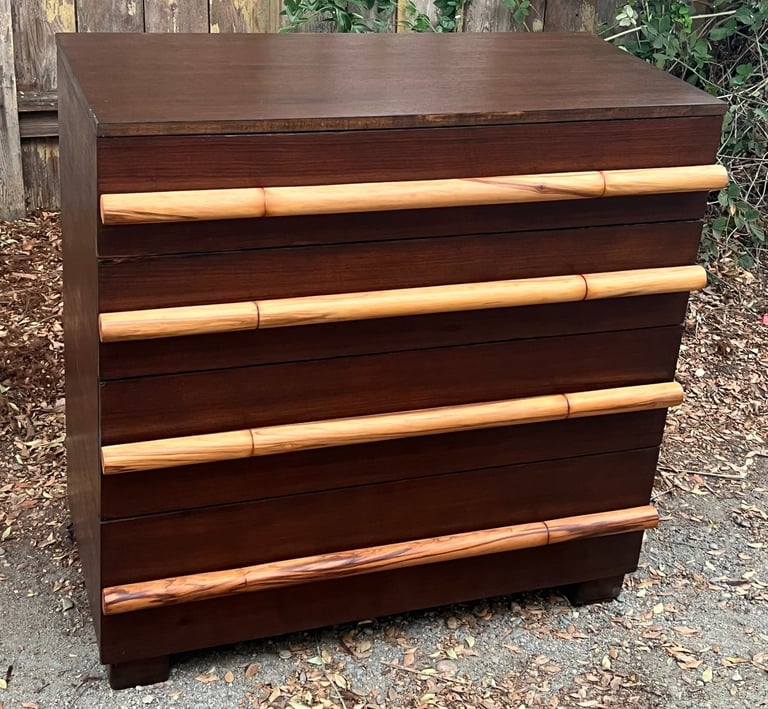 This gorgeous solid wood Cavalier dresser was rescued from being tossed on the curb and brought back to life. Likely produced in the 1950s as a sample piece in a Los Angeles showroom, it carries a timeless mid-century modern design with clean lines. Heavy and sturdy, in great shape with minor flaws.